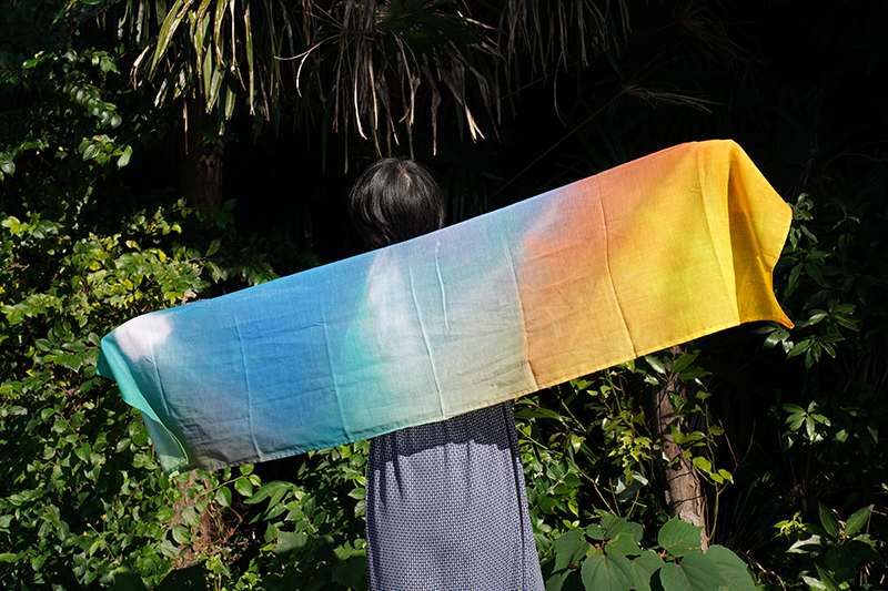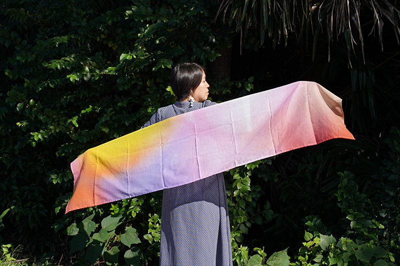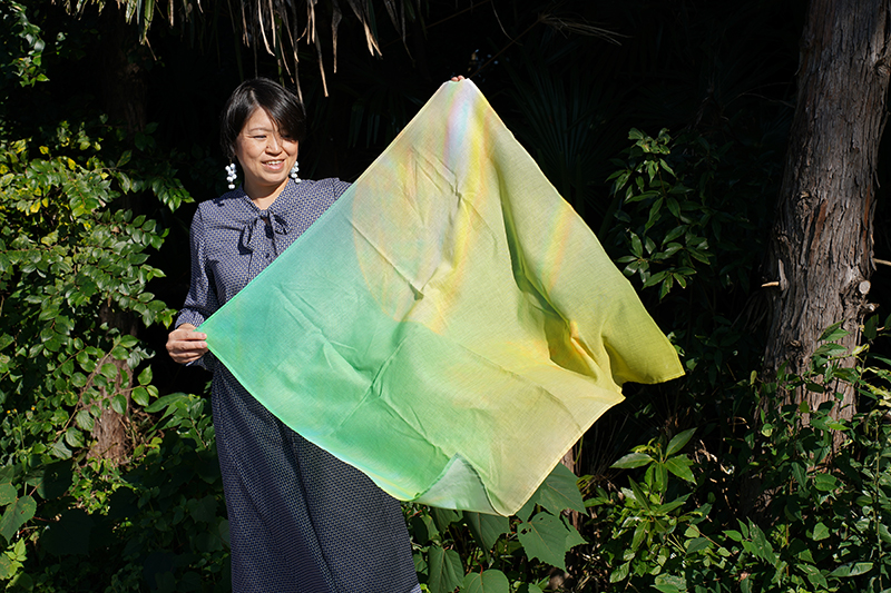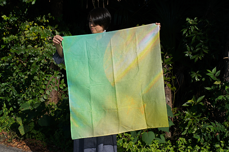 このヒーリングフォトを飾る以外にも、日常で使えるものや触れてエネルギーを感じられるものにできないかと考えていた所、ご縁で桐生の染物屋さんをご紹介いただき今回の商品が実現しました。